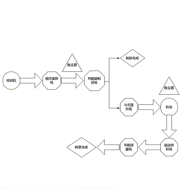 近日來自山東泰安的李總需要購買煤矸石制砂制漿設(shè)備聯(lián)系到我們,根據(jù)他的需求我們?yōu)樗O(shè)計(jì)了方案。我們了解到李總的煤矸石原料為200mm,要求產(chǎn)量達(dá)到100噸,經(jīng)過具體分析我們?cè)O(shè)計(jì)了方案,需要使用到的設(shè)備有給料倉、對(duì)輥制砂機(jī)、斗式提升機(jī)、料倉、振動(dòng)給料機(jī)、節(jié)能球磨機(jī)各一臺(tái),顎式破碎設(shè)備和除塵器各兩臺(tái),具體工藝流程如下: