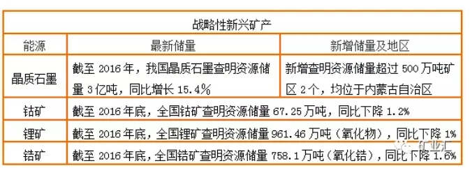 國土資源部提供的數(shù)據(jù)顯示,2016年,除鈾礦、稀土礦外,天然氣、煤層氣、鎢礦、錫礦、銻礦、金礦、磷礦、晶質(zhì)石墨等8種礦產(chǎn)查明資源儲量均有明顯增長;煤炭、石油、銅礦、鋁土礦、鎳礦、螢石6種礦產(chǎn)查明資源儲量小幅增長;鐵礦、鉻鐵礦、鈷礦、鉬礦、鋰礦、鋯礦、鉀鹽7種礦產(chǎn)查明資源儲量小幅下降;頁巖氣查明資源儲量有一定程度的下降。